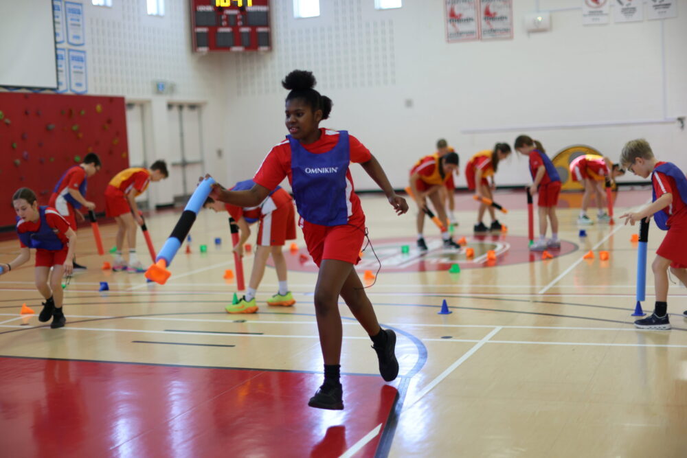 Pour commencer, il faut séparer les participants en 2,3 ou 4 équipes d’environ 6-8 personnes et leur attribuer une zone dans le gymnase qui leur servira de point de départ. Ensuite, déposer les cônes au centre du gymnase à distance égale pour chacune des équipes.